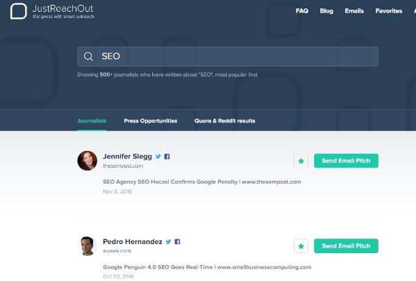 Just Reach Out is a great tool to use for reaching out to journalists in your chosen niche.