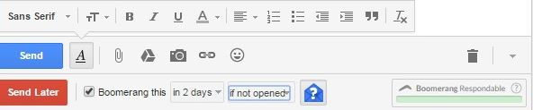 Before sending an email, you can set Boomerang to two days along with the option of “if not opened” or “if not clicked” or “if unread”, etc. This allows you to determine whether it’s worth following up an email based on whether the email was ignored or simply not opened.