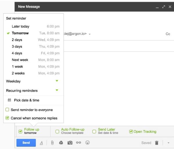 Like Boomerang, Followup.cc gives you a platform for easy email management and reminders, with the difference being Followup.cc requires a paid subscription. However, they offer many extra features not present in Boomerang. With a 14-day free trial, you don’t need to dive head-first into any decisions without seeing if it works for you.