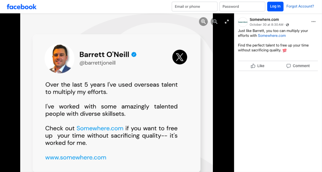 Check out how Somewhere does it on Instagram and Facebook. It highlights social proof from trustworthy industry voices and ensures that all brand mentions address specific pain points experienced by its target audience. This is how Somewhere guarantees that its social content will be effective at grabbing and retaining follower attention. It also shows potential customers that they, too, can put their trust in the brand and expect to see positive results if they convert.