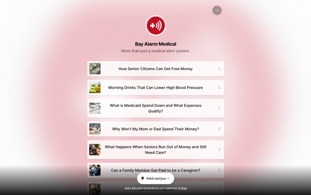 For instance, check out Bay Alarm Medical, which bases its social media presence on helping followers solve unique pain points. On Instagram, this business regularly promotes blog posts that contain meaningful content. By targeting topics that are interesting to the elderly and those caring for them, Bay Alarm manages to attract follower attention. And with a simple Linktree link in its bio, it’s also effectively using social media to funnel high-quality organic traffic to its website, where it can nurture visitors into leads and loyal customers.