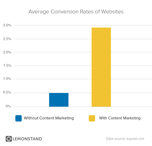 Content marketing is a hugely effective way to increase conversions, something that is a necessity for an e-commerce website. Content marketing allows for companies to brand themselves and build customer loyalty. In fact, content marketing is so important, that Kapost states it can increase your conversion rate by almost six times. The average conversion rate for sites with content marketing is 2.9%. Those without have an average rate of 0.5%.