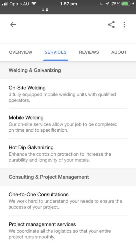 So I started looking for restaurants and hairdressers locally had their services or menu in their GMB listing. Nothing.