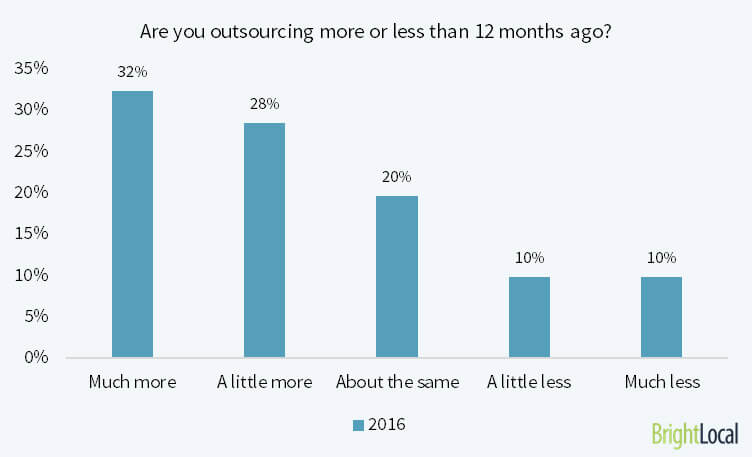 BrightLocal surveys have shown 60% of SEOs and marketers are outsourcing more and more each each year.