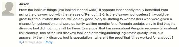 In a comment to a recent Search Engine Watch article a reader asks – where is the proof that the link disavow tool has worked for anybody?