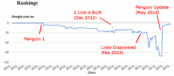 - finally on 9th May 2013 the site bounced back to position 10, a position last seen over 9 months ago. Over the next couple of weeks the site’s positions crept up to as high as #4, significantly higher than the initial positions directly after Penguin initially hit.